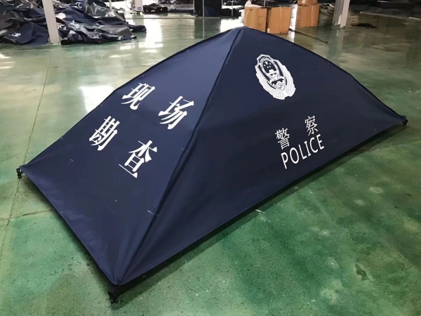 “便携式现场勘查尸体防护蓬”采用自高强度的轻质伸缩折叠网架及高密度防水龙尼布,可对现场勘查中的尸体的保护,保持尸体的原始状态,阻挡非现场勘查人员视线和偷拍,使用方便快捷,可单答携带和操作展开支撑和快速收纳。