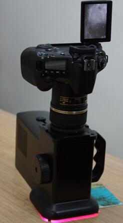 便携暗室全光谱同轴光摄影仪,定型配光输出在特定装置的暗室空间,形成无自然光和杂散光的光干扰状态下,高反差显现检体界面遗留指纹等痕迹的专业装备。