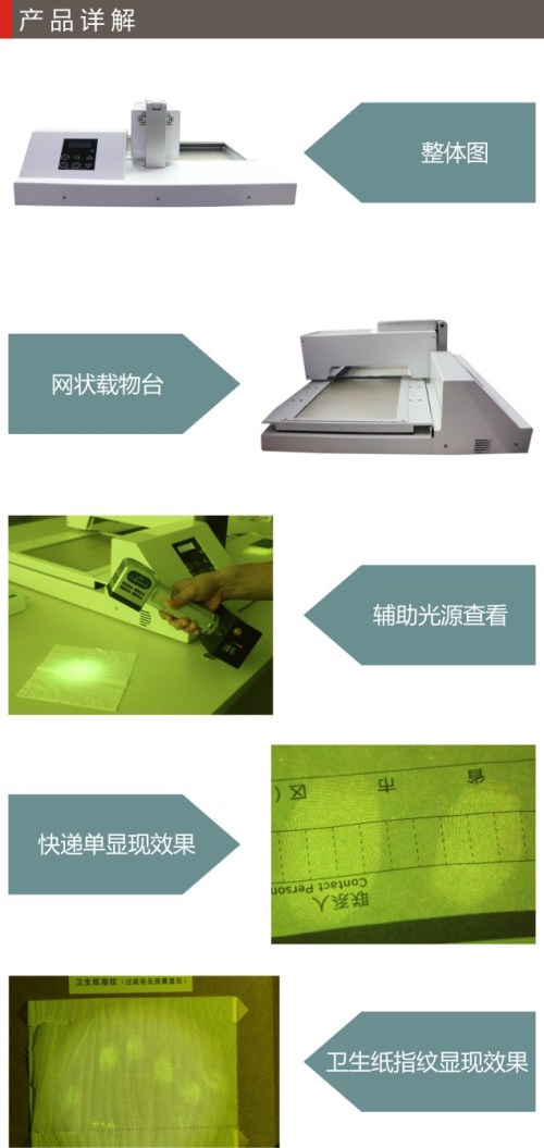 该设备显现后,可继续使用茚三酮、DFO或物理显影液进行处理显现。