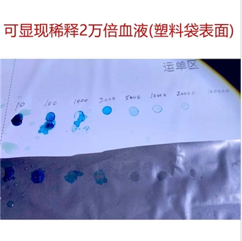3、灵敏度:可清晰显现稀释10000倍的以上的血液