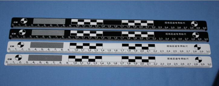 长30cm, 最小刻度1mm,具备平整无卷曲、长期使用不变形、表面亚光处理、照相低反光等优点,适用于足迹测量和拍摄,也可适用于特长物证的测量和拍摄。